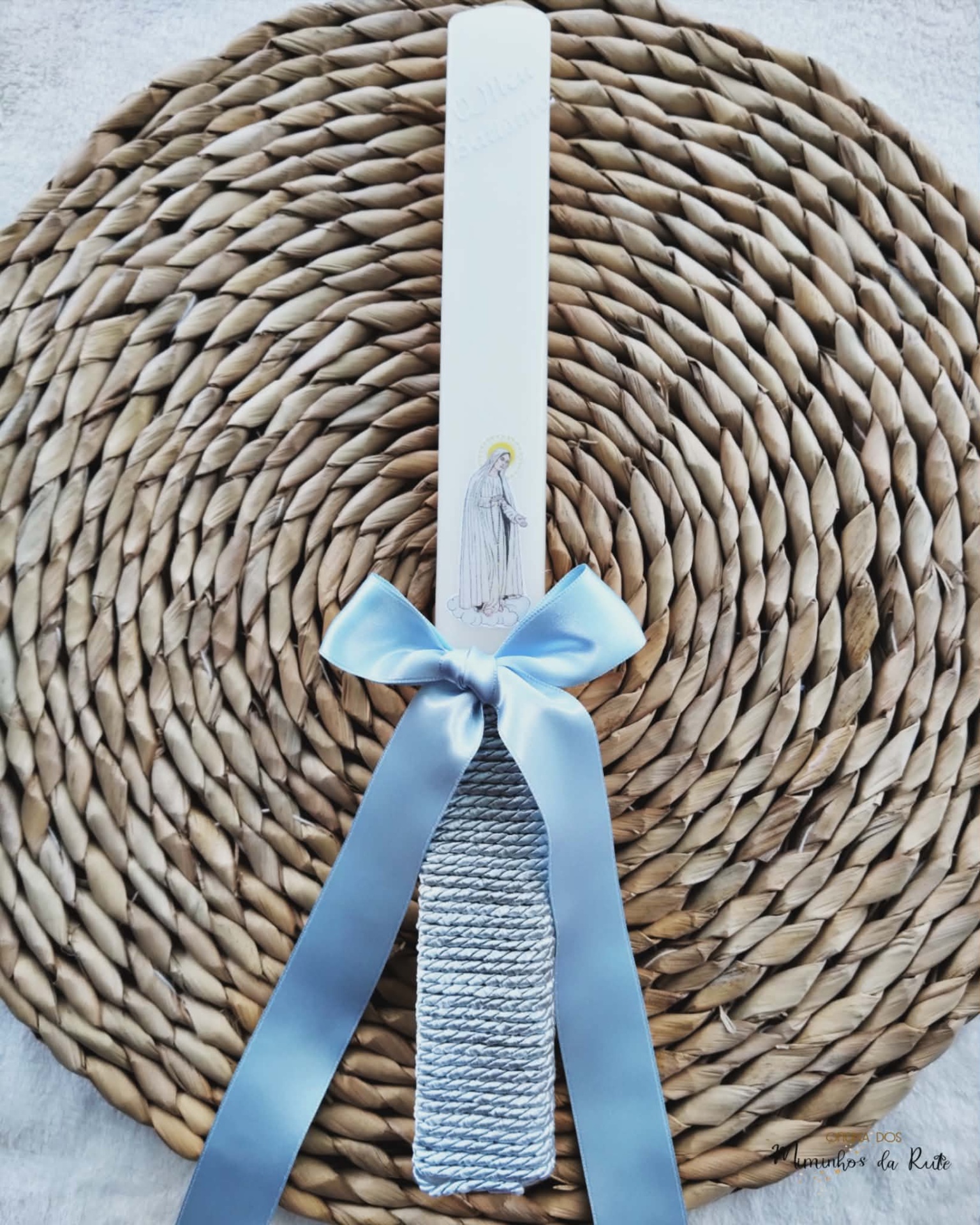 Se vais batizar o/a teu/ua filho/a ou vais ser madrinha e queres uma vela igual a esta, basta escolher as cores do cordão e do laço e após finalizares a tua encomenda, envia mensagem para miminhosdarute@gmail.com com a data do batismo e nome a personalizar.